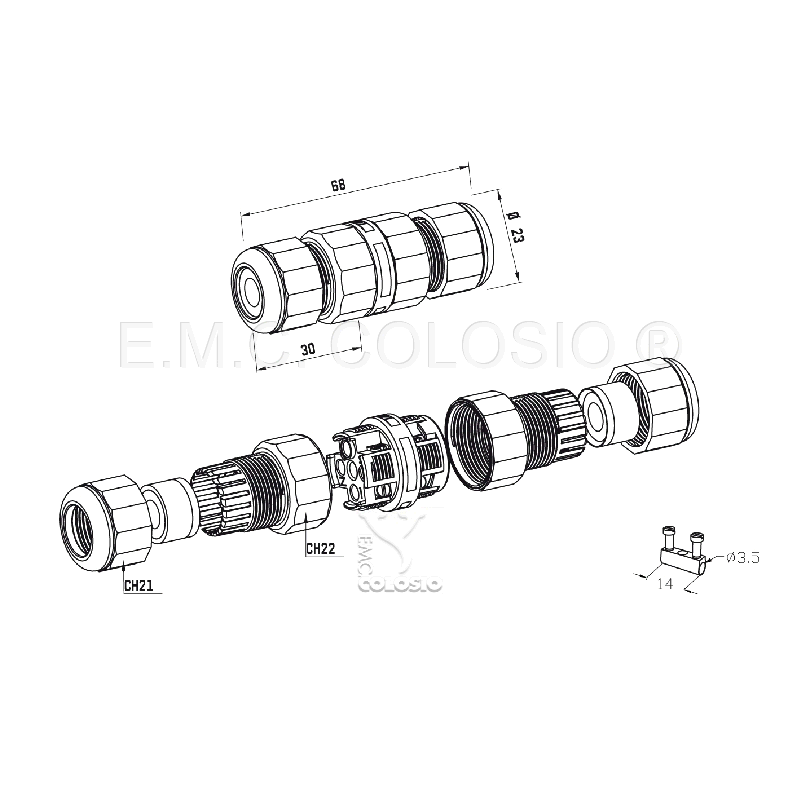 | IP68 WATERTIGHT CLAMP CONNECTION DEVICE SOCKET + PLUG WITH 2 POLES + GROUND | |