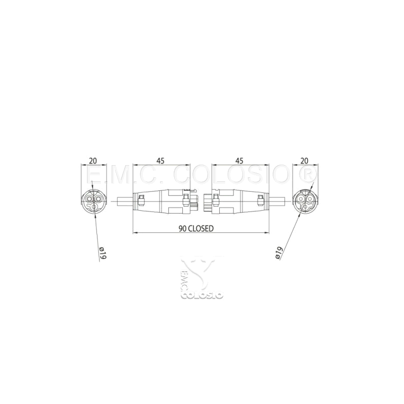 | CONNESSIONE A MORSETTO PROTETTA PRESA + SPINA CILINDRICA A 2 POLI + TERRA | |