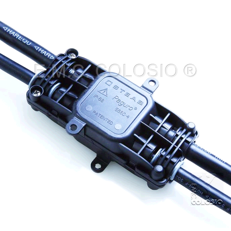 | IP68 WATERTIGHT CLAMP CONNECTION DEVICE WITH 2 POLES + GROUND 1 WAY IN 3 WAYS OUT (WITH GEL) Product of the series Paguro of Steab | |