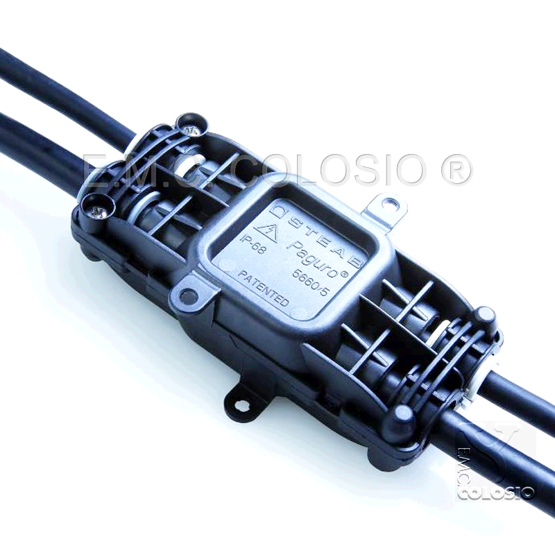 | IP68 WATERTIGHT CLAMP CONNECTION DEVICE WITH 4 POLES + GROUND 1 WAY IN 3 WAYS OUT (WITH GEL) Product of the series Paguro of Steab | |